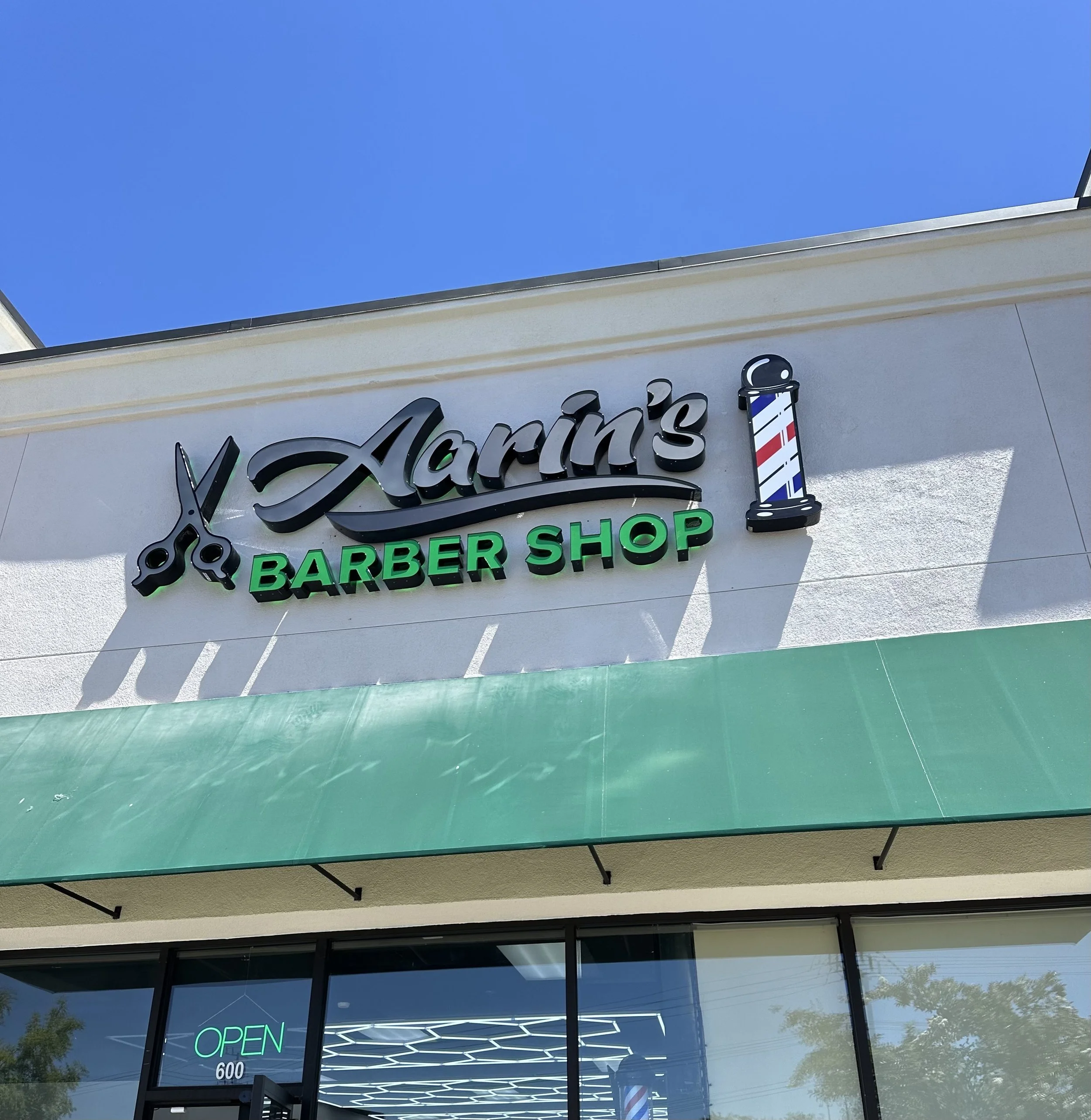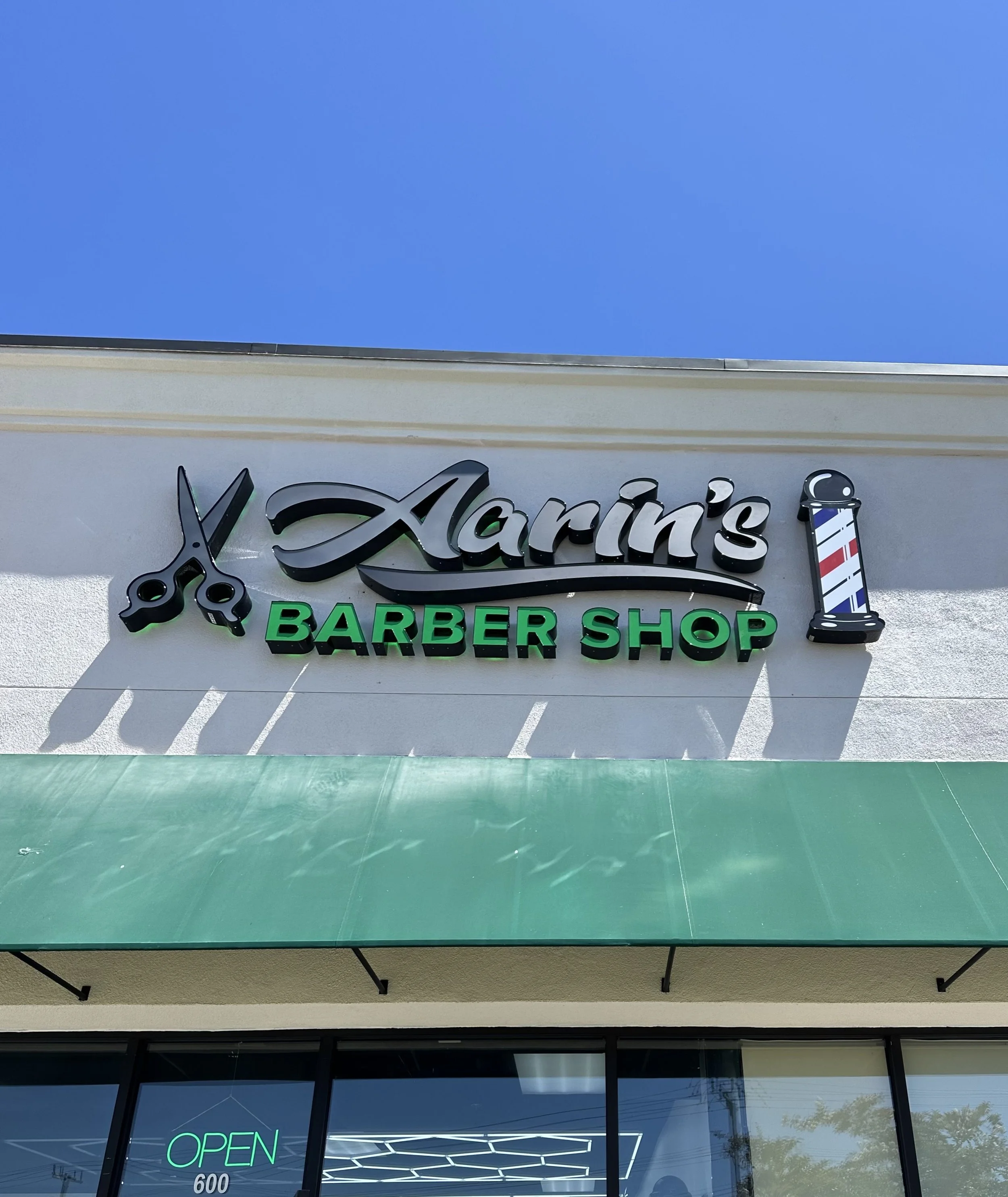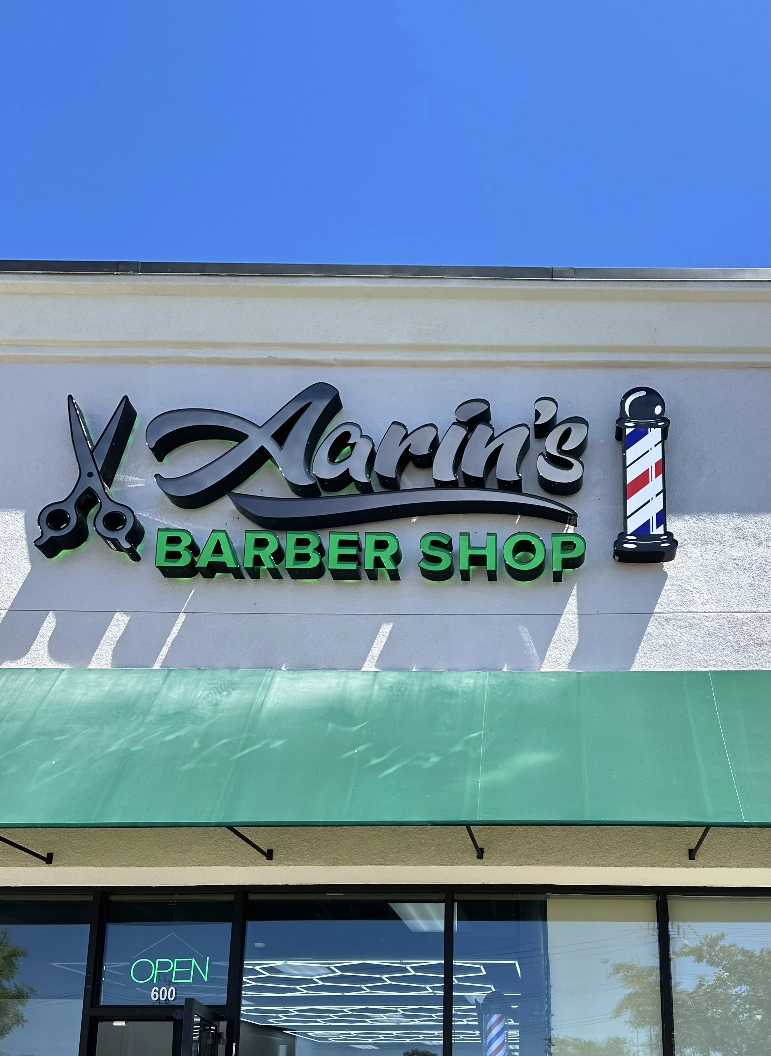 Illuminated front and back-lit white LED channel letters with custom LED green halo for the back.