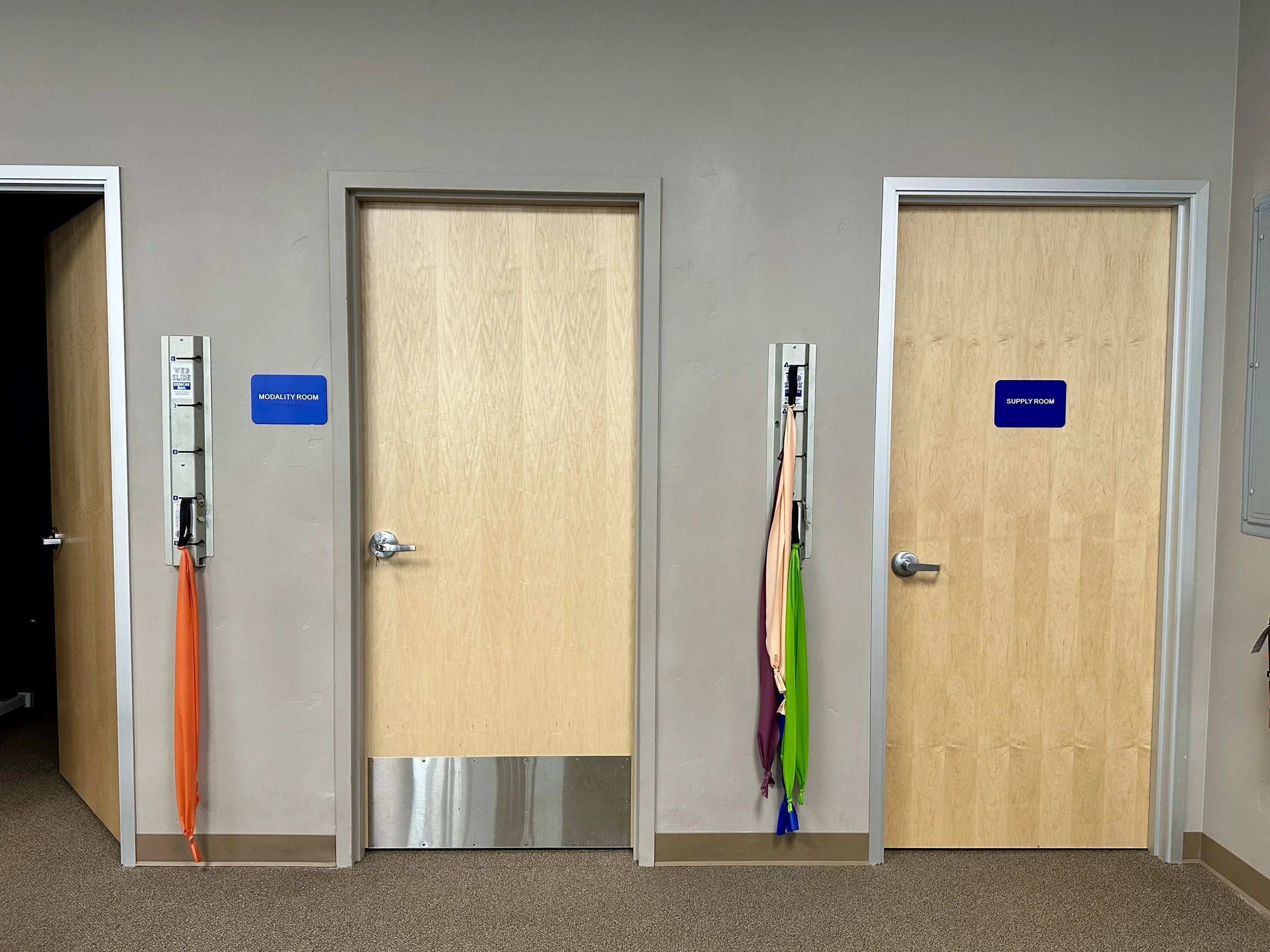 1/2” black-cut acrylic 3D outdoor dimensional letters, window vinyl, interior brushed aluminum lobby sign with standoffs, and custom ADA braille signs.